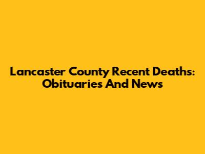 Lancaster County Recent Deaths: Obituaries And News
