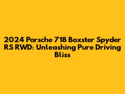 Hey guys! Buckle up because we're diving deep into the exhilarating world of the 2024 Porsche 718 Boxster Spyder RS RWD. This isn't just another sports car; it's a symphony of engineering, design, and raw emotion, meticulously crafted to deliver an unmatched driving experience. For those who crave the open road and the visceral thrill of a high-performance machine, the Spyder RS is a name that resonates with passion and precision. Imagine yourself behind the wheel, the wind in your hair, and the intoxicating roar of the engine filling your senses as you carve through winding roads. The 2024 Porsche 718 Boxster Spyder RS isn't just about getting from point A to point B; it's about the journey, the connection between driver and machine, and the pure joy of driving.