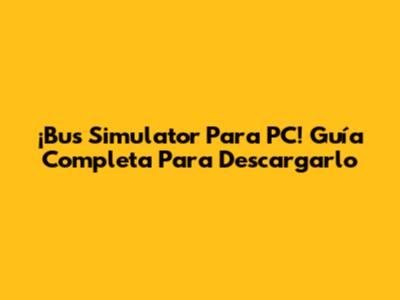 ¡Bus Simulator Para PC! Guía Completa Para Descargarlo