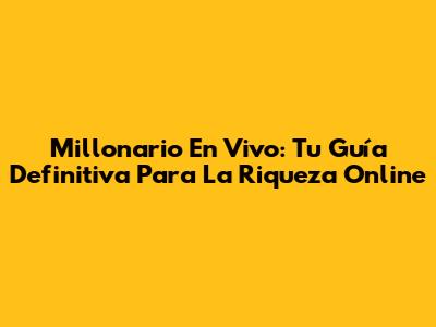Millonario En Vivo: Tu Guía Definitiva Para La Riqueza Online