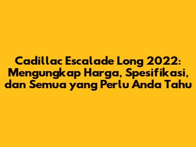 Sebagai gambaran, harga Cadillac Escalade Long 2022 biasanya dimulai dari angka yang cukup besar, dan dapat meningkat signifikan tergantung pada trim level dan opsi yang dipilih. Untuk mendapatkan informasi harga yang paling akurat, disarankan untuk menghubungi dealer Cadillac resmi di daerah Anda. Mereka akan memberikan informasi terbaru mengenai harga, penawaran khusus, dan opsi pembiayaan yang tersedia.