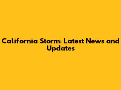 California Storm: Latest News And Updates