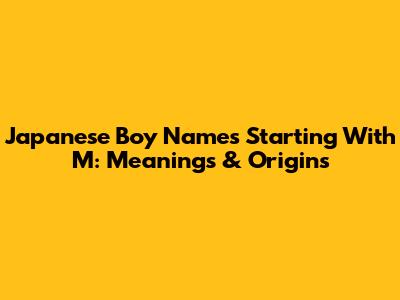 Japanese Boy Names Starting With M: Meanings & Origins