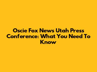 Oscie Fox News Utah Press Conference: What You Need To Know