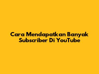 Cara Mendapatkan Banyak Subscriber Di YouTube