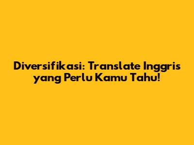 Diversifikasi: Translate Inggris Yang Perlu Kamu Tahu!