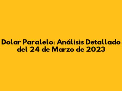 Dolar Paralelo: Análisis Del 24 De Marzo De 2023