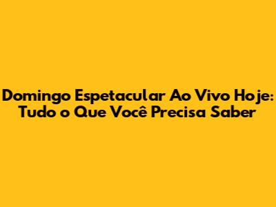 Domingo Espetacular ao vivo hoje! Fala, galera! Se você é como eu e adora um bom programa de domingo, então você está no lugar certo. O Domingo Espetacular é um dos maiores sucessos da televisão brasileira, sempre trazendo notícias, reportagens especiais e muita informação relevante. Mas o que esperar do programa de hoje? Quais são as novidades e os destaques que vão agitar a sua tarde? Preparamos um guia completo para você não perder nada. Vamos mergulhar no universo do Domingo Espetacular e descobrir tudo o que vai rolar.