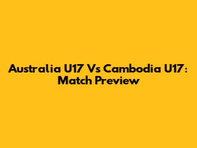 Australia U17 Vs Cambodia U17: Match Preview