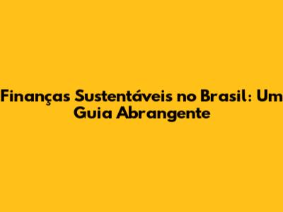 Como Investir em Finanças Sustentáveis no Brasil?