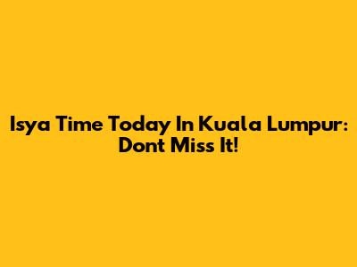 Isya Time Today In Kuala Lumpur: Don't Miss It!