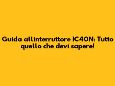 Cos'è l'Interruttore IC40N e a Cosa Serve?