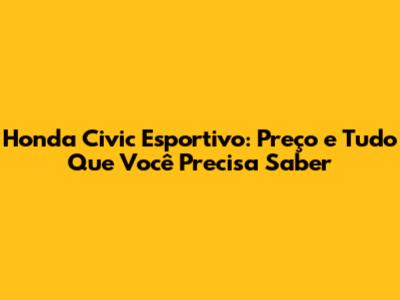 Preço do Honda Civic Esportivo: Quanto Custa essa Máquina?