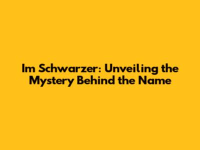Im Schwarzer: Unveiling The Mystery Behind The Name