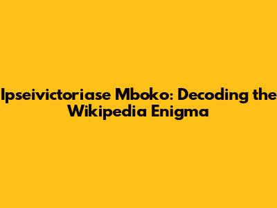 Ipseivictoriase Mboko: Decoding The Wikipedia Enigma