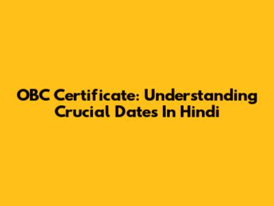 OBC Certificate: Understanding Crucial Dates In Hindi