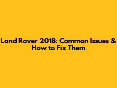 Land Rover 2018: Common Issues & How To Fix Them