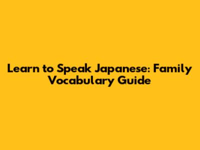 Learn To Speak Japanese: Family Vocabulary Guide