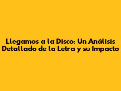 En la letra de "Llegamos a la Disco", las metáforas y simbolismos juegan un papel crucial en la construcción de su significado. Los letristas a menudo utilizan estas herramientas para añadir profundidad y complejidad a la canción, invitando a los oyentes a una experiencia más rica y significativa. Las metáforas pueden representar ideas abstractas, emociones o incluso personajes, mientras que los simbolismos pueden evocar imágenes y sensaciones específicas. En este análisis, exploraremos cómo se utilizan estas figuras retóricas para enriquecer la narrativa y conectar con el público a un nivel más profundo. El uso de metáforas y simbolismos no solo embellece la letra, sino que también añade capas de significado, permitiendo a los oyentes interpretar la canción de diferentes maneras. Esta ambigüedad intencionada puede generar un mayor interés y fomentar la reflexión. Descubriremos cómo el letrista utiliza estas herramientas para crear una atmósfera particular, evocar emociones específicas y transmitir ideas complejas de forma creativa. Además, analizaremos cómo los simbolismos se relacionan con la cultura popular y las experiencias personales del público. Desentrañar los significados ocultos detrás de las metáforas y los simbolismos nos permite apreciar la maestría del letrista y la complejidad de la canción. Es un proceso de descubrimiento que nos invita a sumergirnos en el mundo de la canción y a conectar con ella de una manera más profunda y personal. A través de este análisis, desarrollaremos una mayor comprensión del arte de la composición musical y de la capacidad de la letra para comunicar ideas complejas de forma creativa. ¡Prepárense para una aventura que estimulará su mente y les abrirá nuevos horizontes!
