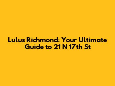 Hey there, food lovers and Richmond explorers! Are you curious about Lulu's at 21 N 17th St, Richmond, VA 23219? You're in the right place! We're diving deep into everything you need to know about this popular spot. From the buzz around the address to the menu, the vibes, and what people are saying, consider this your ultimate guide. Get ready to find out if Lulu's is your next go-to dining destination.