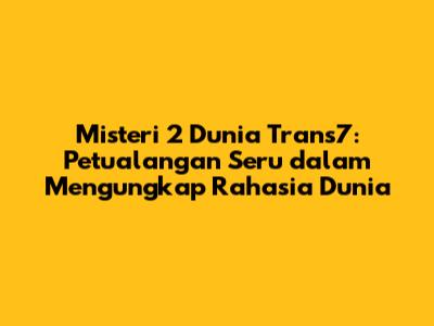 Misteri 2 Dunia Trans7, sebuah program yang telah memukau jutaan pemirsa, kembali dengan episode-episode terbaru yang tak kalah menarik. Guys, kalian pasti penasaran kan dengan berbagai misteri yang akan diungkap? Program ini gak cuma sekadar menyajikan informasi, tapi juga mengajak kita berpetualang, berpikir kritis, dan pastinya, terhibur. Dalam artikel ini, kita akan membahas secara mendalam tentang Misteri 2 Dunia Trans7 terbaru, mulai dari tema-tema yang diangkat, narasumber yang hadir, hingga dampak program ini bagi para penonton.