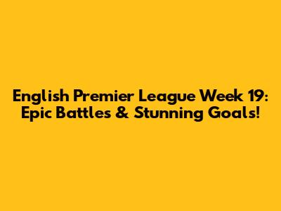 English Premier League Week 19: Epic Battles & Stunning Goals!