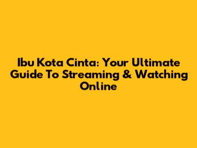 Ibu Kota Cinta: Your Ultimate Guide To Streaming & Watching Online