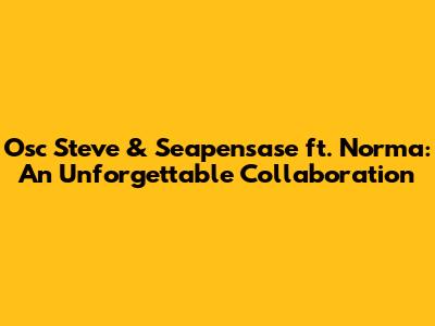 Hey guys! Get ready, because today we're diving deep into a collaboration that's been making some serious waves in the music scene: Osc Steve and Seapensase featuring Norma. You might have heard the buzz, or maybe you've already been jamming to their track, but either way, this is one partnership that deserves a spotlight. We're going to unpack what makes this team-up so special, exploring the unique talents each artist brings to the table and how they blend together to create something truly magical. So, buckle up, because we're about to explore the artistry, the sound, and the impact of this killer collaboration. It's not every day you get to witness such a dynamic fusion, and when it happens, you know it's worth talking about.