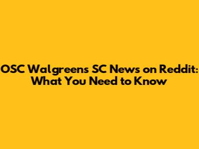 OSC Walgreens SC News On Reddit: What You Need To Know