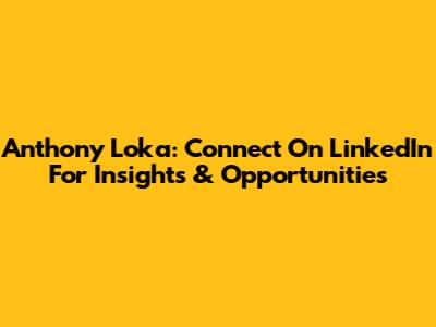 Anthony Loka: Connect On LinkedIn For Insights & Opportunities