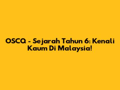 OSCQ - Sejarah Tahun 6: Kenali Kaum Di Malaysia!