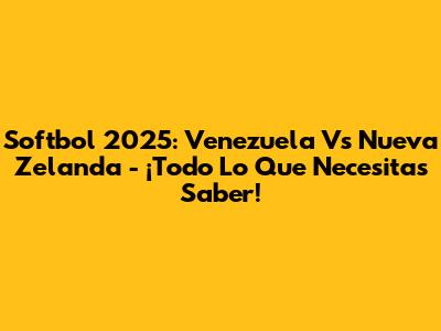 Softbol 2025: Venezuela Vs Nueva Zelanda - ¡Todo Lo Que Necesitas Saber!