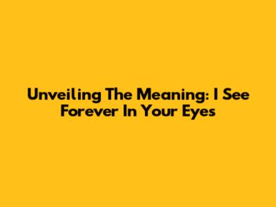 Unveiling The Meaning: 'I See Forever In Your Eyes'