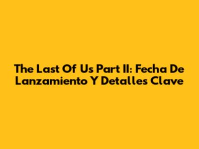 The Last Of Us Part II: Fecha De Lanzamiento Y Detalles Clave