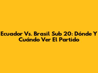 Ecuador Vs. Brasil Sub 20: Dónde Y Cuándo Ver El Partido