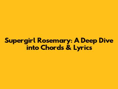 Hey music lovers! Ever found yourself humming along to a tune and thinking, "Man, I wish I could play that!" Well, today we're diving deep into the world of Supergirl Rosemary, exploring its captivating chords and lyrics. This song has a way of sticking with you, right? So, let's break down everything from the chords to the emotional heart of the lyrics, so you can sing along with confidence! This exploration is geared towards both seasoned musicians and those just starting out. We'll keep it simple, accessible, and most importantly, fun. Ready to learn about this awesome song? Let's get started!