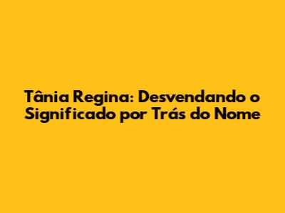 - Tânia Regina é um nome comum? Tânia e Regina são nomes populares, mas a combinação Tânia Regina é menos comum.