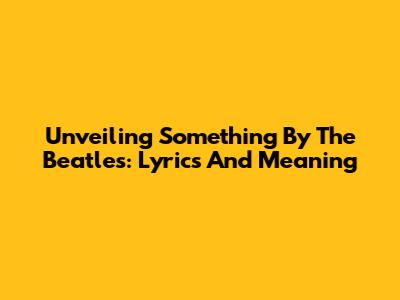 Unveiling 'Something' By The Beatles: Lyrics And Meaning