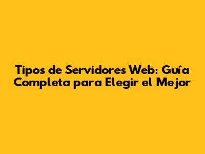 Tipos De Servidores Web: Guía Completa Para Elegir El Mejor