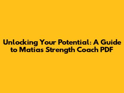 Unlocking Your Potential: A Guide To Matias Strength Coach PDF