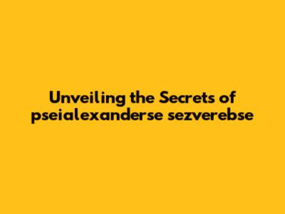 Unveiling The Secrets Of Pseialexanderse Sezverebse