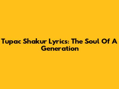 Tupac Shakur Lyrics: The Soul Of A Generation