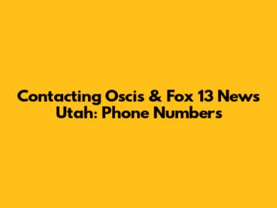 Contacting Oscis & Fox 13 News Utah: Phone Numbers
