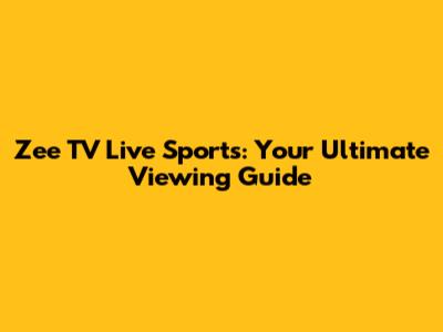 Zee TV Live Sports: Your Ultimate Viewing Guide