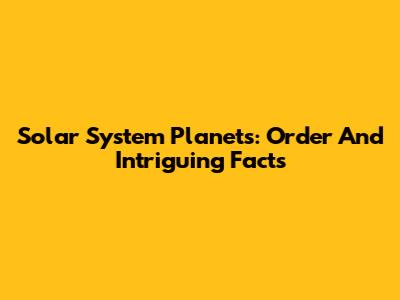 Solar System Planets: Order And Intriguing Facts